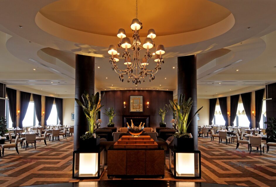 パノラマビューが広がる最上階レストラン「スターゲイト」。ホスピタリティの行き届いた空間はホテルならでは。
