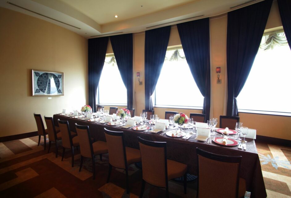 スカイレストラン「スターゲイト」の個室は10名まで着席可能。地上130mの眺望をゆったりと個室から楽しんで。
