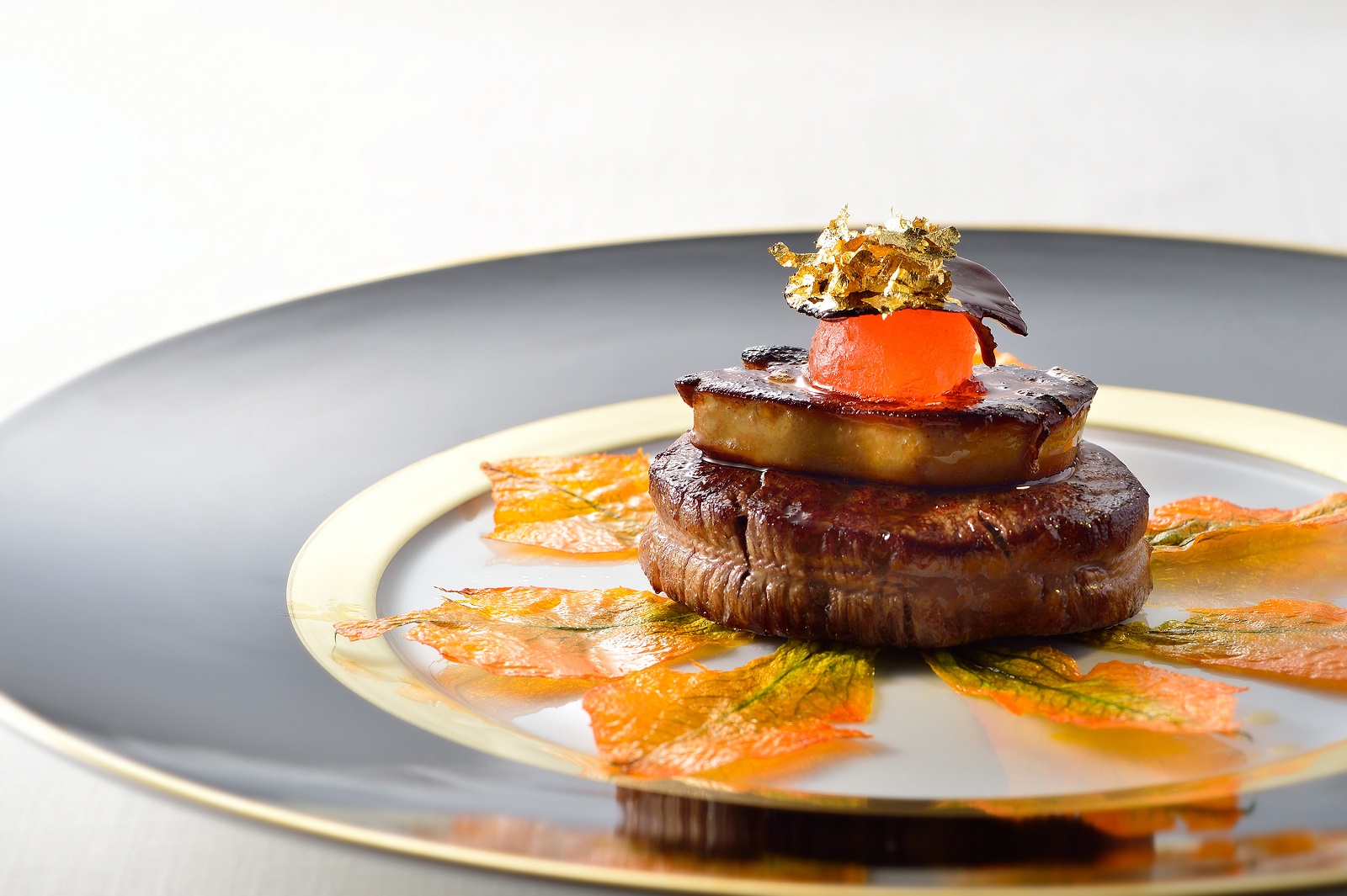 お箸で食べられるようアレンジしたフランス料理も。ゲストを想った美食のおもてなしは幅広い層に好評。