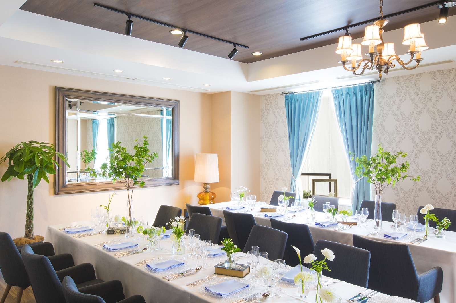 会場「ローズルーム」はモダンクラシックな雰囲気。和洋いずれのコーディネートも引き立つ空間。