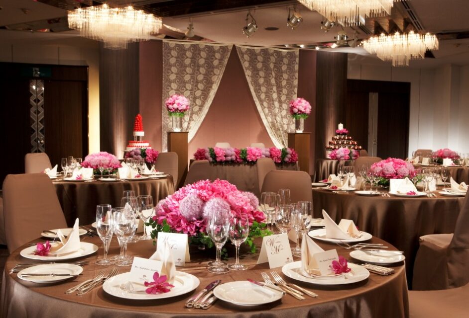 10階の「ザ・ボールルーム」は、ラグジュアリーなコーディネートと多彩な演出が映える大空間。着席~312名。