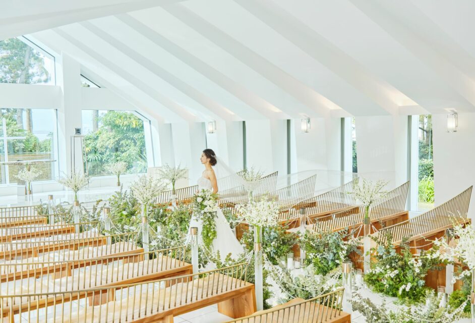 ベイサイドリゾートに佇む、光と緑を感じる純白の独立型チャペル