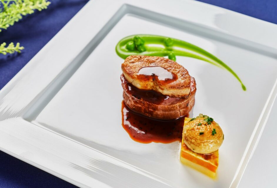 婚礼料理は、シェフが一品一品心を込めて仕上げる華やかなフレンチのコース。幅広い年齢層に親しまれる味わい。