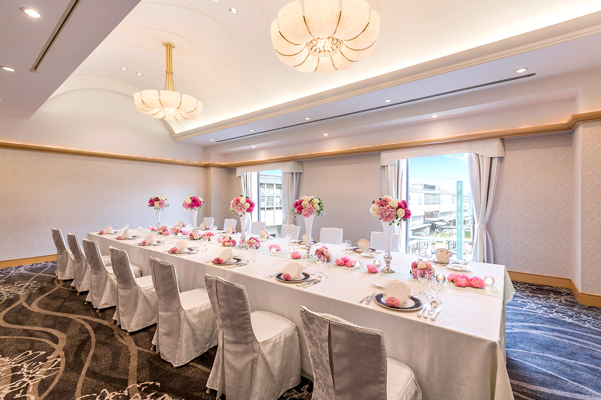 エレガントな雰囲気の小宴会場ではシンプルでありながら上質なお食事会が叶う。最大20名まで。