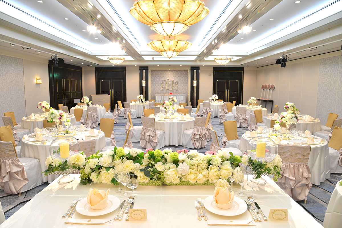- 【小宴会場】エメラルド / ルビー / トパーズ / 桃 / 櫻 / 董 / オーキッド(最大20名収容)、【中宴会場】クリスタル / パール / サファイア(最大200名収容)、【レストラン】フランス料理 プリドール(最大40名収容)