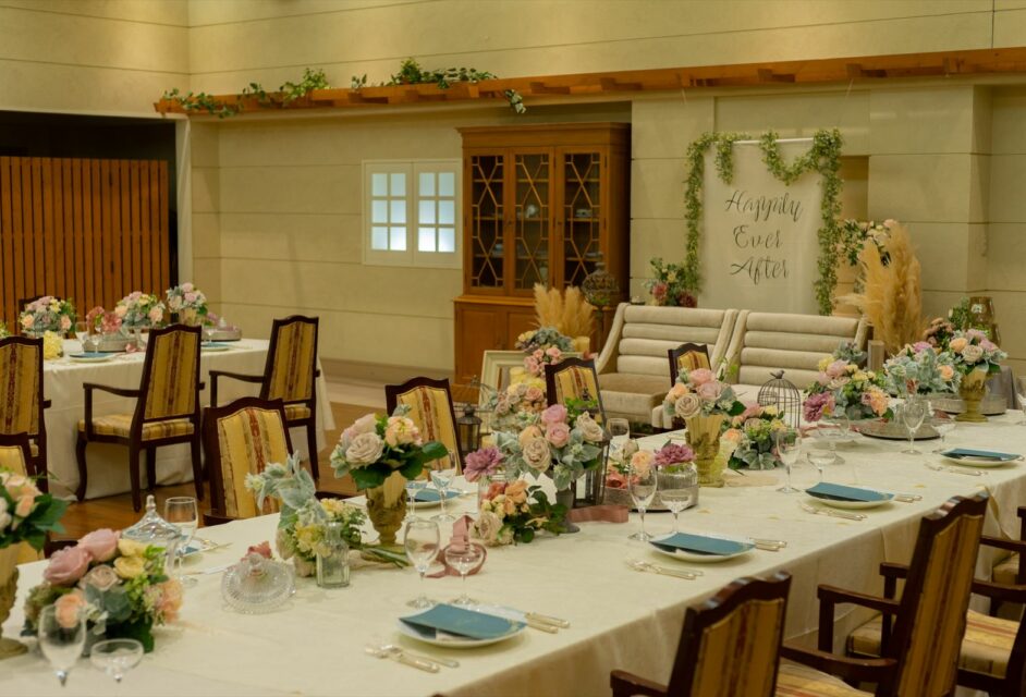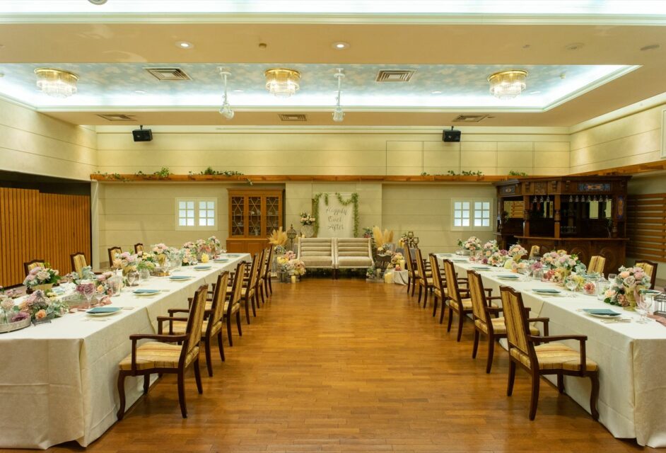 ヨーロッパにある貴族の邸宅のような雰囲気の「曄の間」。20名まで着席できる少人数向けのバンケット。