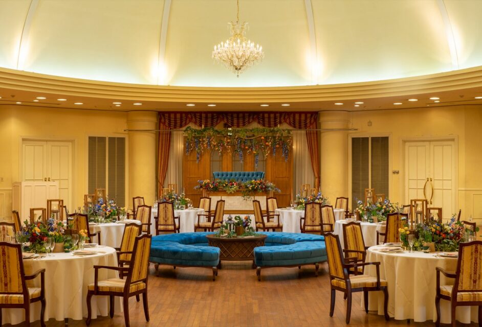 ゲストとの距離が近い「曄の間」。邸宅に招いたようなカジュアルなスタイルでアットホームなパーティを。