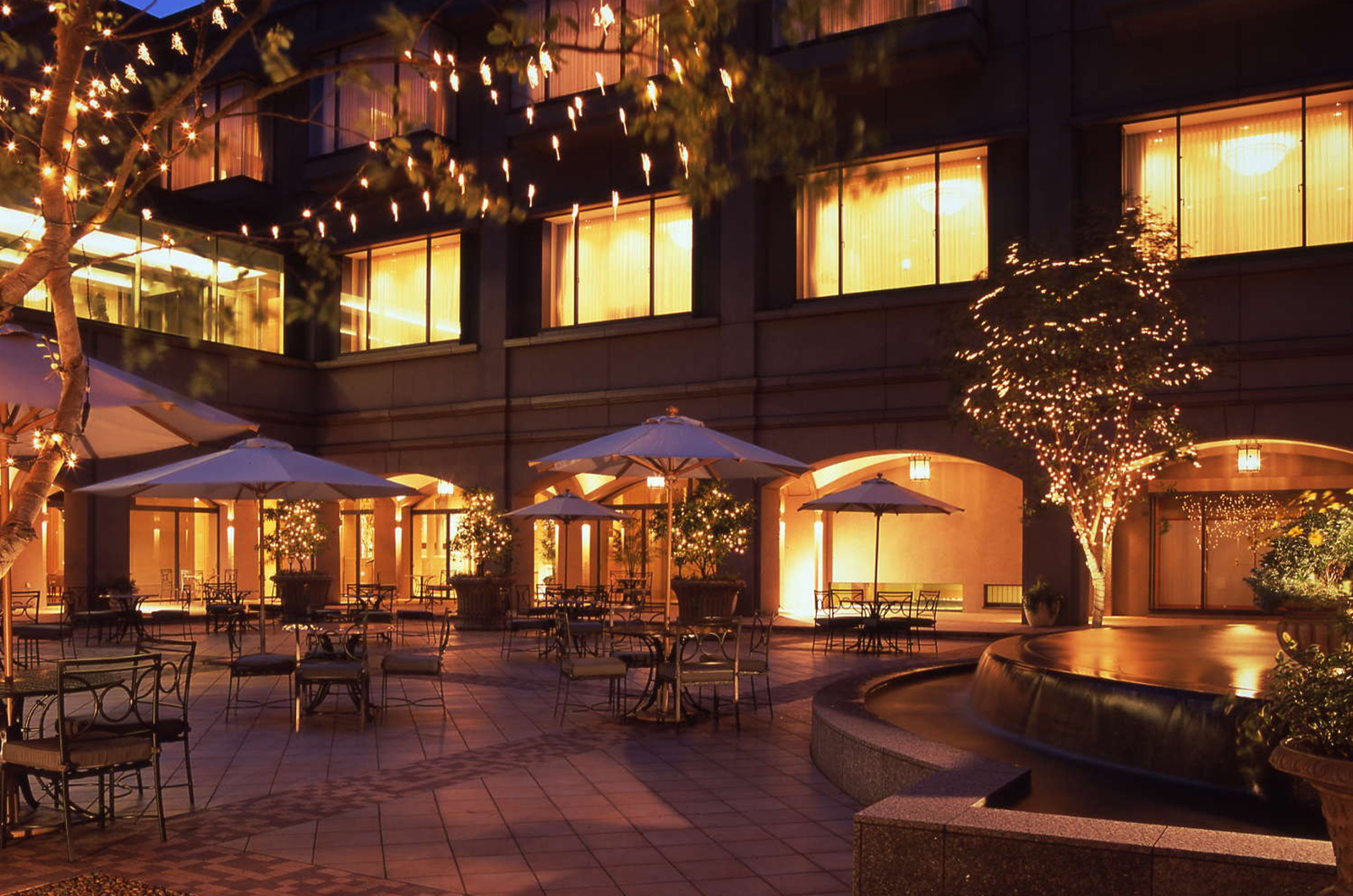 開放感溢れる欧風庭園「パティオ」は人気のフォトスポット。イルミネーション輝く夜はロマンティックな雰囲気。