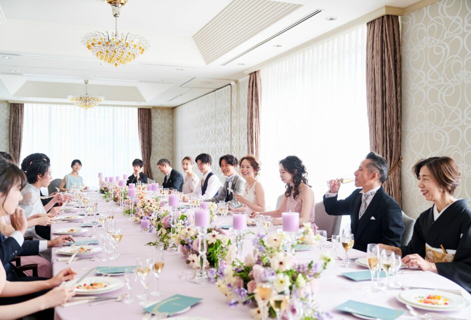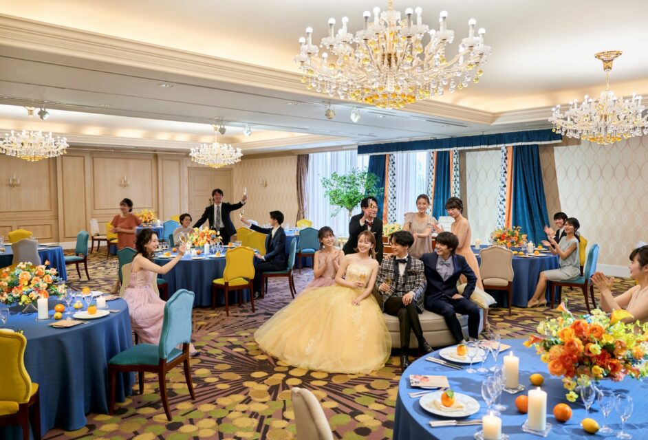 明るくポップな色あいの「ブリストル」。その場にいるだけで楽しく幸せを感じられるバンケット。着席~100名。