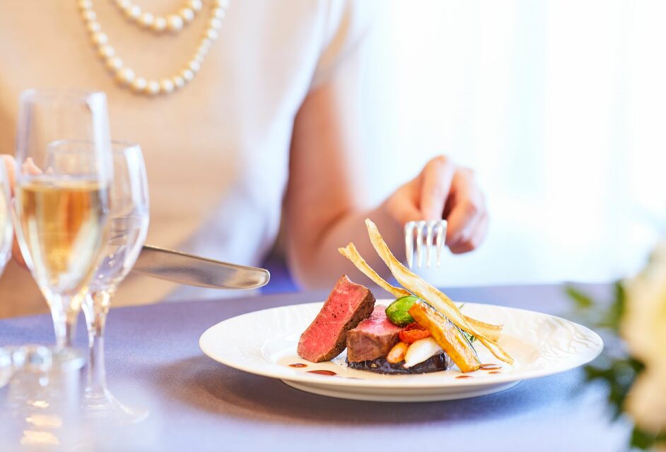 フランス料理・日本料理・中国料理・折衷料理と、ふたりの好みに合わせてコースを選択することができる。