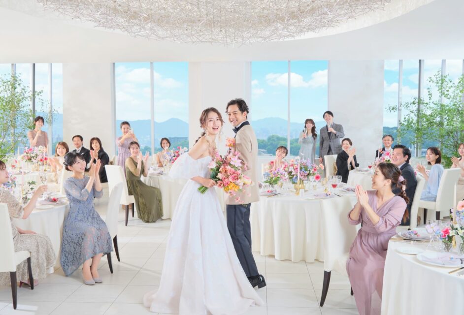 ホテル最上階から広島市内一望の「ムーングロー」は人気の会場。窓に広がる景色もおもてなしのひとつに。