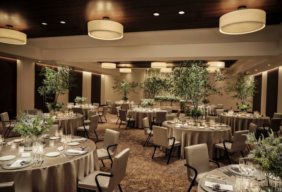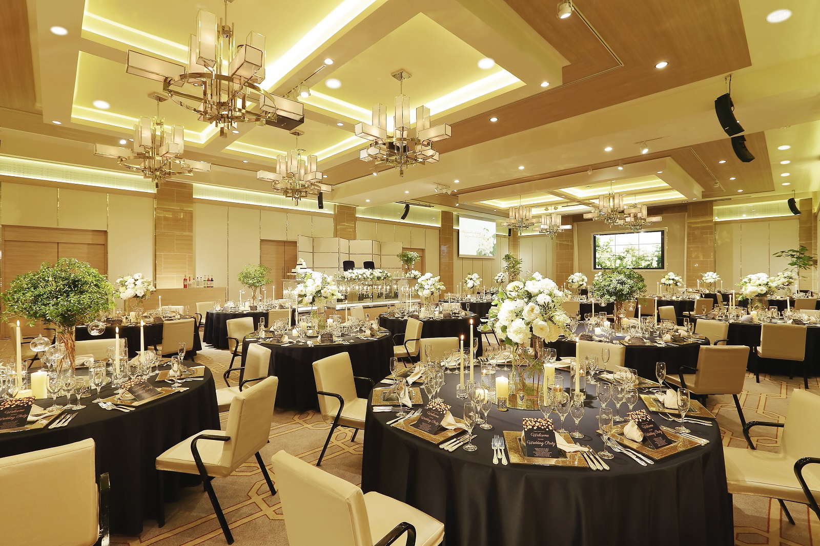 「オリエンタルボールルーム」は230インチのスクリーンなど音と光の最新設備が揃う。華やかなパーティが実現。