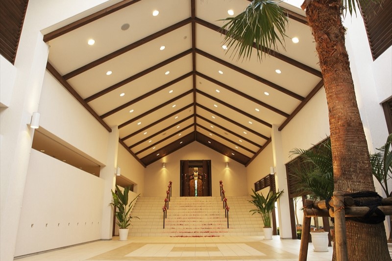 椰子の葉がそよぐ、心地の良いリゾート空間「The Palm Garden(ザ・パームガーデン)」。2800坪もの広大な敷地を一組で貸し切って、大切な人に囲まれるプライベートなウエディング。クリスタルのきらめきと水の音の組み合わせが幻想的な「アクアルース」、クラシカルな教会を思わせる「ナチュールクラシカ」の2つのチャペルと、タイプの異なる2つのプール付きガーデンを併設したパーティ会場があり、自在に組み合わせて2人らしいスタイルをつくることができる。