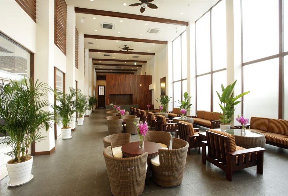 広大な敷地内には、ゆったりとしたラウンジも備えているので、ゲストにゆとりの時間を過ごしてもらえる。