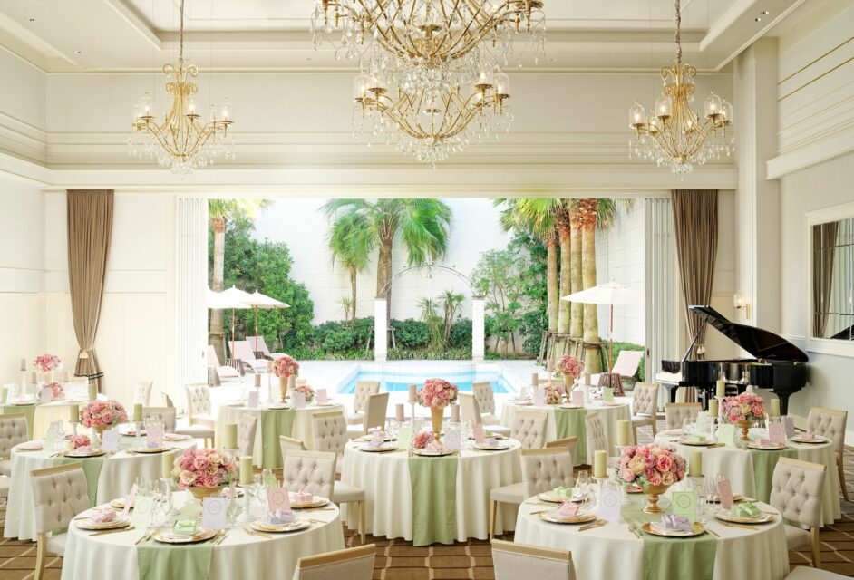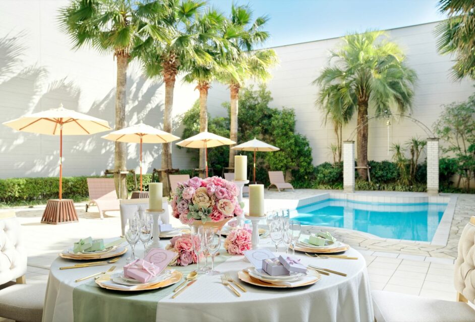150名まで着席できる「プールヴィラ」は大人の「カワイイ」にあふれる空間。上質なコーディネートも自在。