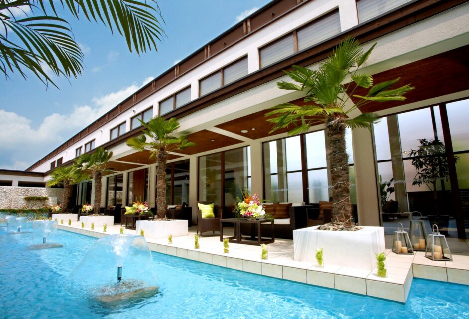 2つのパーティ会場にはそれぞれプール付き。リゾートらしいリラックスした雰囲気で過ごせる。