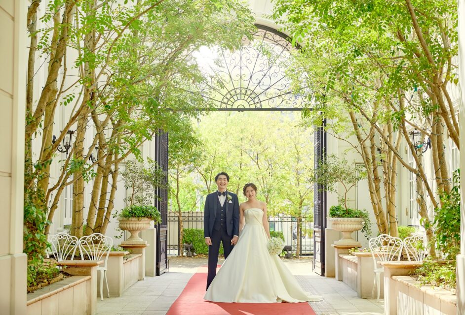 情緒あふれる鴨川の畔。1,000坪もの広大な敷地を持つウェディングステージ『セントアクアチャペル京都』が、装いを新たに2024年1月グランドオープンする。天井高11m、バージンロード25mと壮大なスケールはそのままに、バージンロードに日本的な「参道」をイメージさせる石畳を取り入れるなど、京都らしさも薫る上質な空間へと一新。挙式後の会食会場には、ヨーロッパ風の2階建て邸宅からモダンな和テイストの空間まで華やかな会場が揃う。