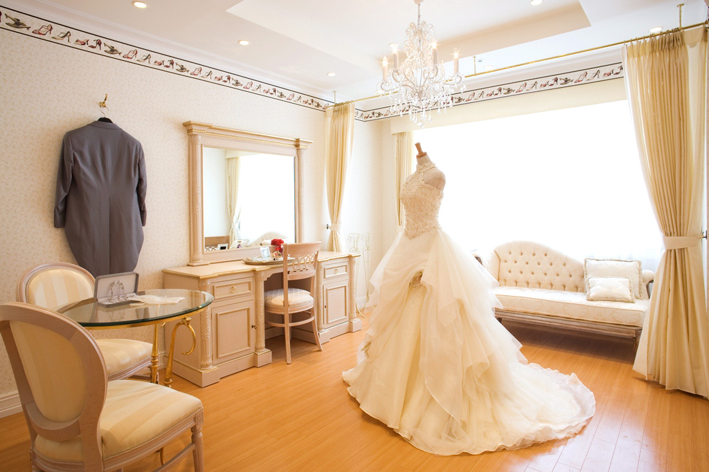 明るい光が差し込むブライズルーム。花嫁になるためのかけがえのないひと時はゆったりとしたお部屋で。