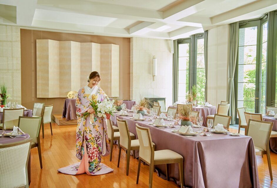 「バンブーコート」は日本の伝統美と西洋のモダンが見事に融合したバンケット。和の装いも映える。着席~90名。