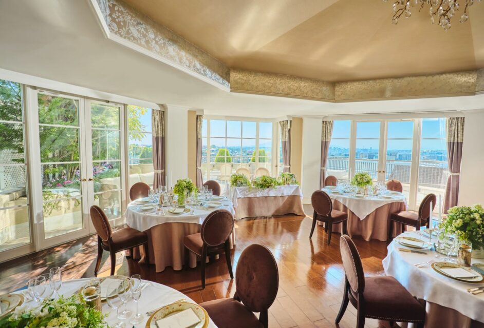 明るい光が降り注ぐ「ケンジントンルーム」は、プライベート感を重視したいご家族会食にぴったりの会場。