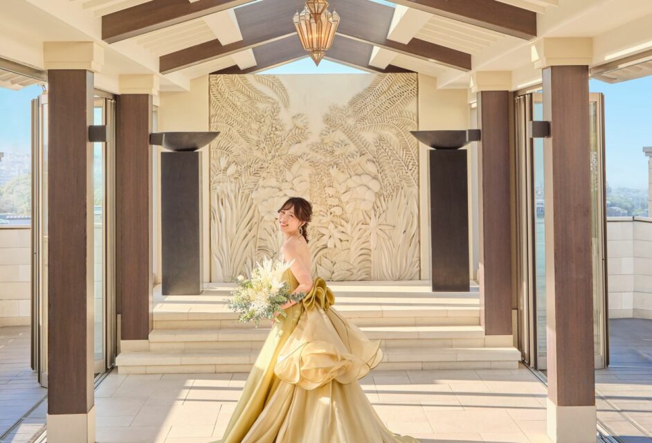 「セントアクアチャペルみなとみらい」は、海抜およそ60メートルの高さに位置し、さえぎるものが何もない自然の美しさに包まれたチャペル。柔らかな陽光が降り注ぐ天窓はチャペル扉の前から祭壇へと続き、祭壇むこうのガラス越しには、清らかな水のきらめきと緑と空だけを切り取った景色が広がる。バージンロードや壁にはバリの天然石が用いられ、まるで海外リゾートのような趣。桜木町駅から徒歩5分。土日祝は無料送迎バスも運行。
