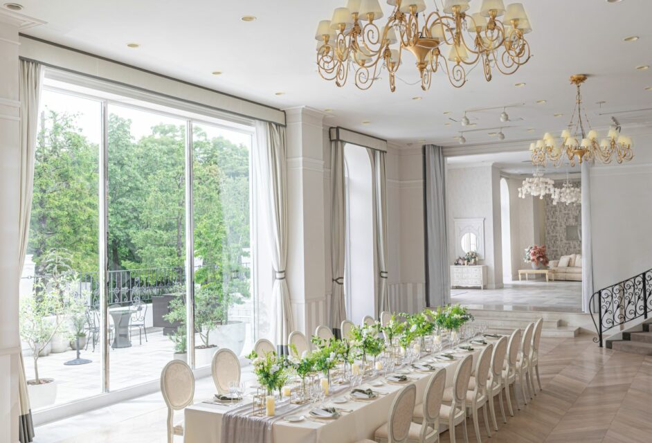 会場「ブローニュフォレスト邸」は貴族の館がモチーフ。すべてに格調の高さが感じられる優美な邸宅で心温まる会食を。
