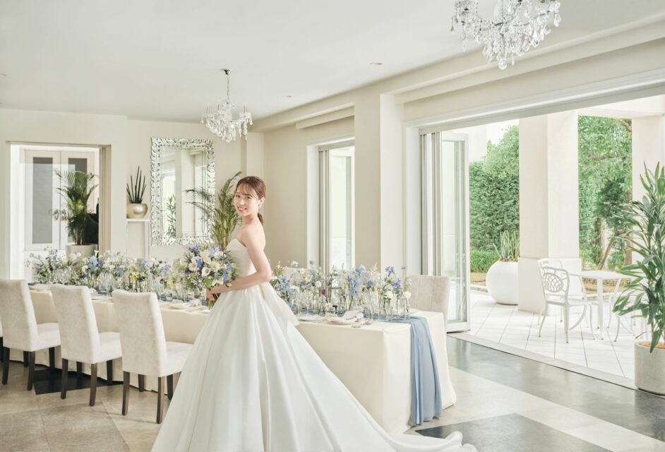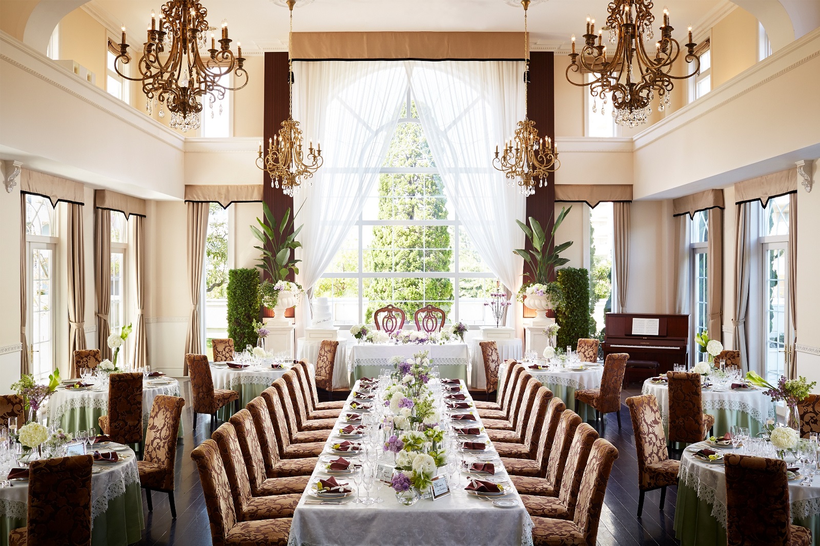 「メルローズ」はご親族中心のパーティに最適。上質なインテリアが配されたガーデン付き邸宅。着席~32名。