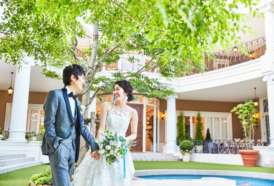 水と緑を感じるガーデン付きの邸宅「ビバリーヒルズ」。自宅に招くようにアットホームなパーティを楽しんで。