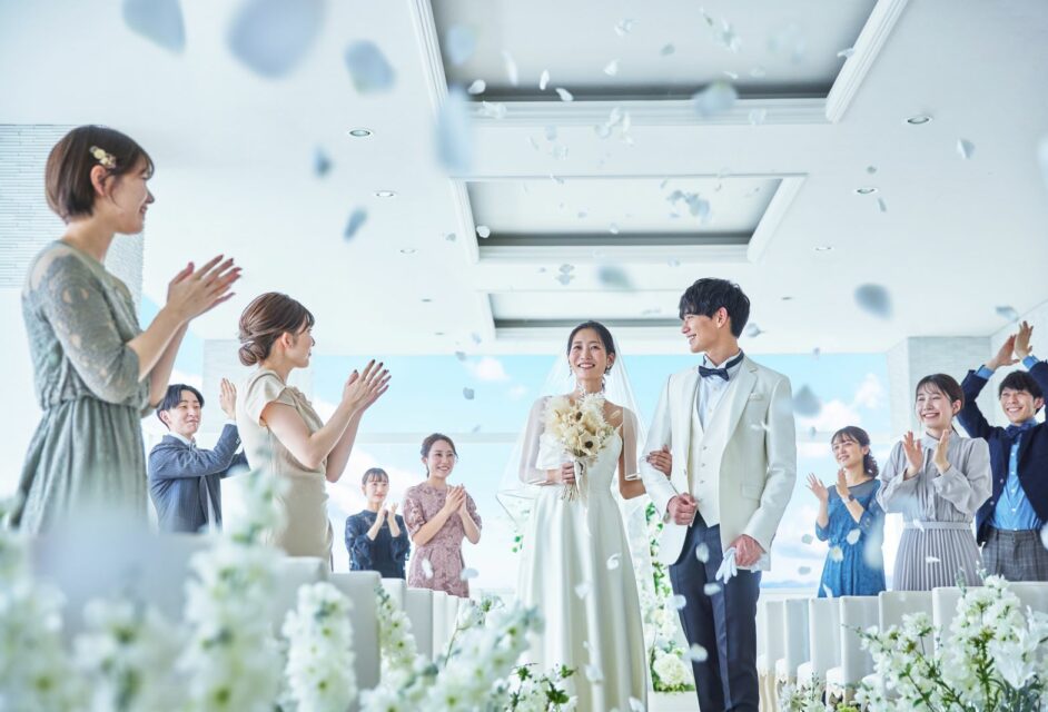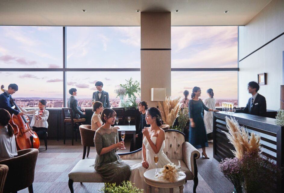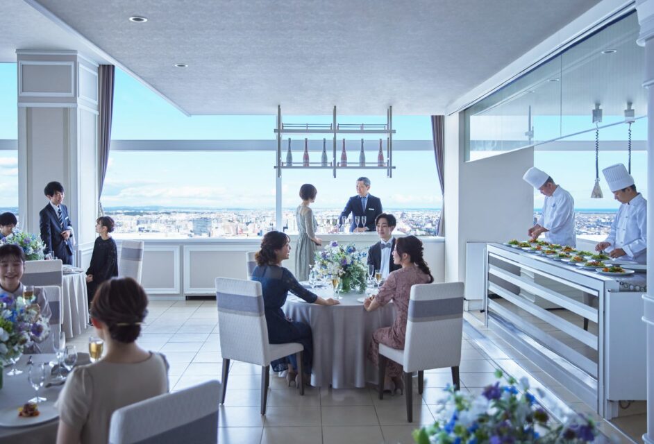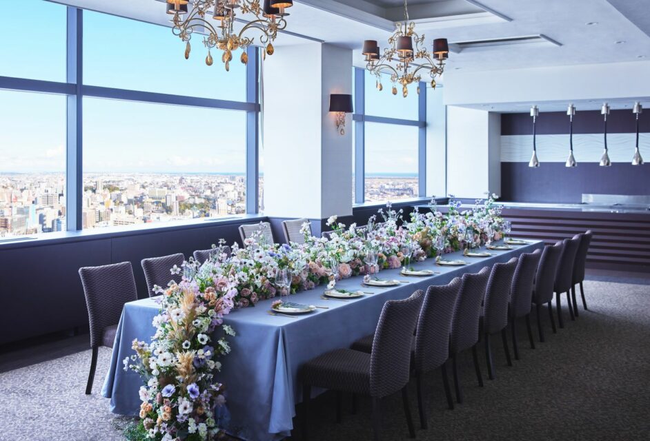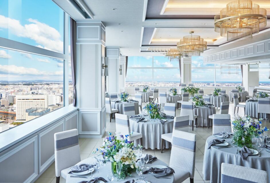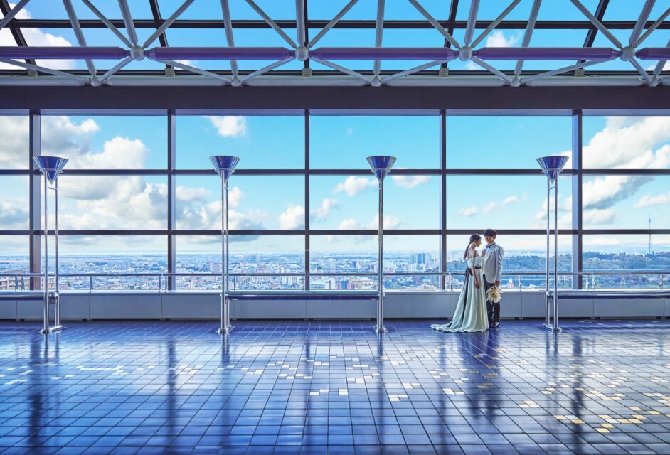 仙台の中心部、アクセス抜群のベストロケーションに位置する「SORANOWA(ソラノワ)」。高層ビルSS30最上階の29階・30階にあるチャペルやバンケット、展望台からは杜の都・仙台の街並みを一望。時の移ろいと共に景色が変わる、ナイトウェディングも人気。大きな窓から光が差し込む白を基調としたチャペルは、まさに「天空のチャペル」の趣きで、入場、セレモニー、退場までどのシーンも美しく演出。キリスト式だけでなく人前式でのセレモニーも可能。