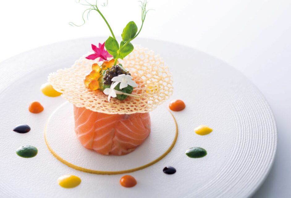 関西の食材を使用した料理や見た目にも美しいオリジナルメニューなど、料理長が最高の一皿に仕上げる。