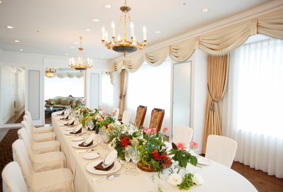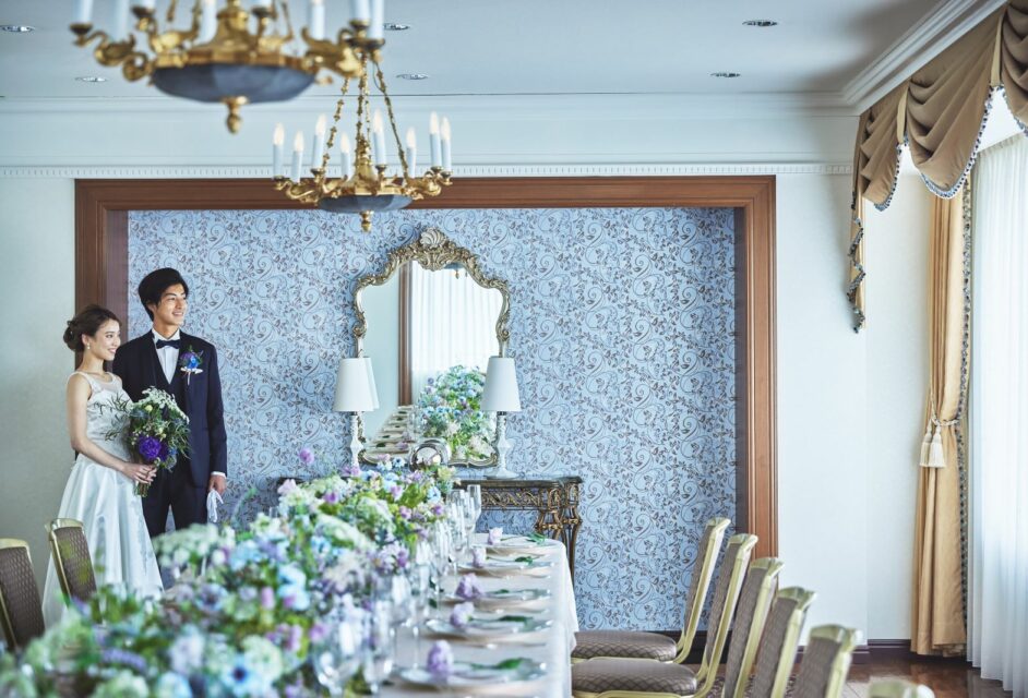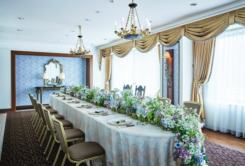 7階の「パウリスタ」は白と水色を基調としたフレンチテイストの会場。邸宅に招いたかのようなパーティに。